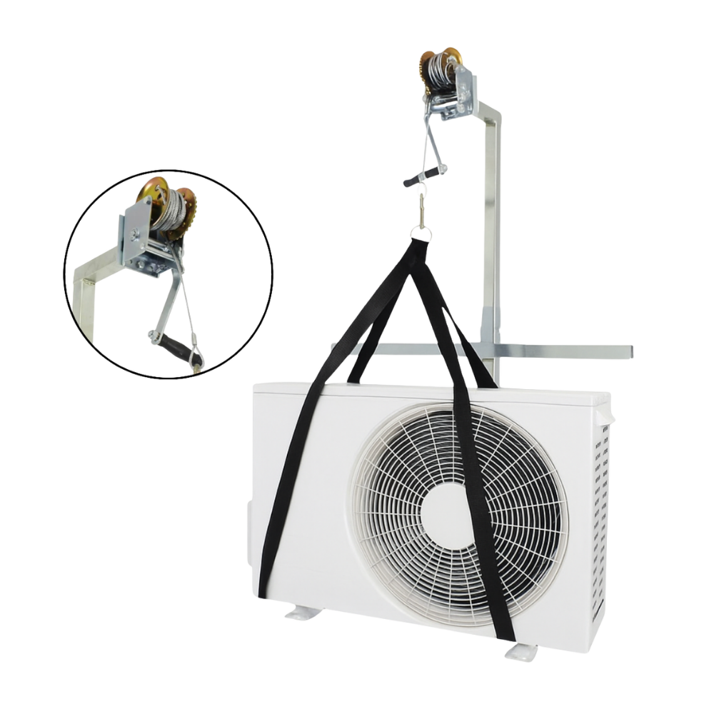Guincho içador desenvolvido para facilitar a instalação de condensadoras de ar-condicionado split, oferecendo mais agilidade e segurança no processo.