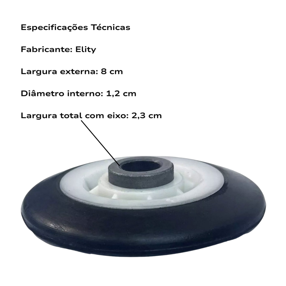 Largura total com eixo: 2,3 cm